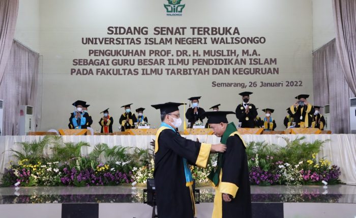 UIN Walisongo Online, Semarang – Dosen Fakultas Ilmu Tarbiyah dan Keguruan, Prof. Dr. H. Muslih, MA dikukuhkan sebagai Guru Besar Pendidikan Agama Islam, Rabu (26/1/22). Dalam upacara pengukuhan yang berlangsung di Aula II UIN Walisongo secara luring terbatas dan disiarkan secara daring tersebut, ia memaparkan hasil penelitiannya tentang pendidikan Islam ditengah masyarakat sekuler barat, khususnya...