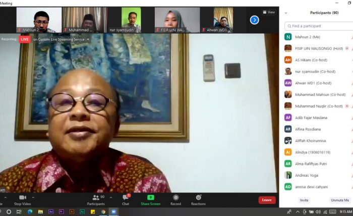 UIN Walisongo Online, Semarang – Kegiatan webinar series yang digelar Prodi Ilmu Politik Fakultas Ilmu Sosial dan Ilmu Politik UIN Walisongo, Kamis (08/04/2021) resmi ditutup. Kegiatan yang berjalan 3 hari berturut-turut dari selasa 06 April telah menghadirkan berbagai pakar dan akademisi Kaliber nasional, seperti AS. Hikam, Menteri Ristek dan Teknologi pada kabinet Persatuan Nasional, Era...