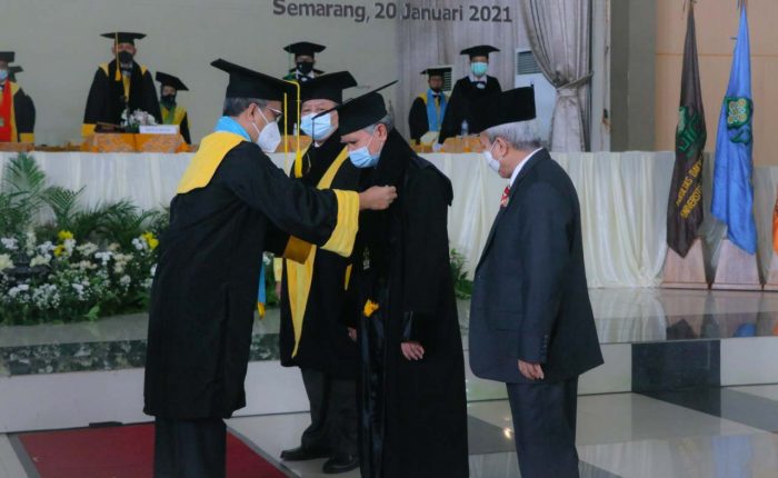 UIN Walisongo Online, Semarang – Universitas Islam Negeri Walisongo Semarang menganugerahkan gelar kehormatan doktor honoris causa kepada Drs. K.H Afifuddin Muhajir, M.Ag. Dengan menerapkan protokol kesehatan ketat, penyerahan gelar doktor kehormatan dilakukan melalui proses sidang terbuka di Aula II Kampus III UIN Walisongo Semarang, Ngaliyan, Semarang, Rabu (20/01/2021). Pemberian gelar doktor honoris causa kepada Kiai...