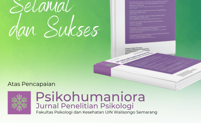 Psikohumaniora: Jurnal Penelitian Psikologi, terbitan Fakultas Psikologi dan Kesehatan, UIN Walisongo Semarang, kembali menorehkan prestasi di kancah internasional. Setelah menjadi jurnal pertama bidang psikologi di Indonesia yang terindeks di database Scopus, Psikohumaniora meraih peringkat Q4 (quartile 4) dengan lingkup applied psychology, clinical psychology, dan experiment and cognitive psychology. Prestasi ini dirilis secara resmi oleh Scimago...
