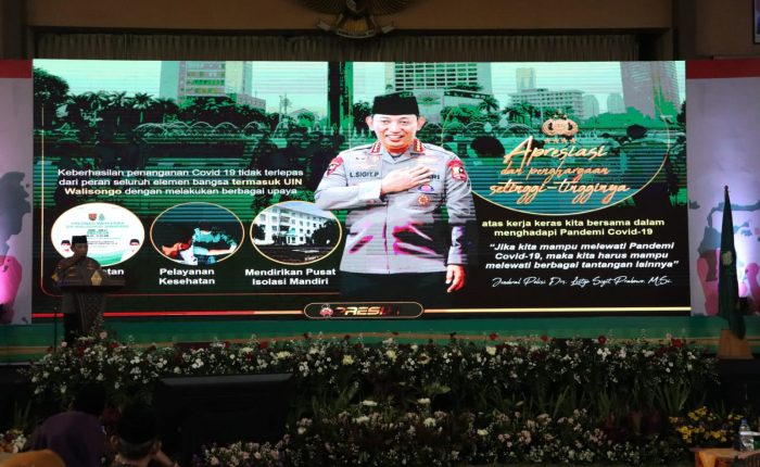 UIN Walisongo Online, Semarang – Kiprah UIN Walisongo Semarang membantu mengatasi pandemi Covid 19 serta kepedulian terhadap lingkungan turut diapresiasi banyak pihak. Yang terbaru, Kepala Kepolisian RI Jenderal Polisi Drs. Listyo Sigit Prabowo, M.Si. mengapresiasi dengan amat tinggi kiprah UIN Walisongo dalam bidang kemanusiaan tersebut. “Kami berikan apresiasi dan penghargaan setinggi-tinginya atas kerja keras bersama...