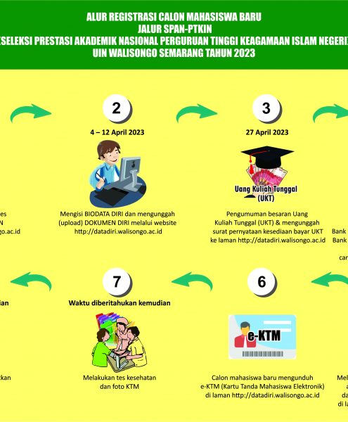 PENGUMUMAN Kelulusan, Tata Cara dan Proses Registrasi Calon Mahasiswa Baru Jalur SPAN-PTKIN Tahun 2023 Universitas Islam Negeri Walisongo Semarang. Informasi tentang : Hasil Kelulusan : silahkan klik disini… Alur...