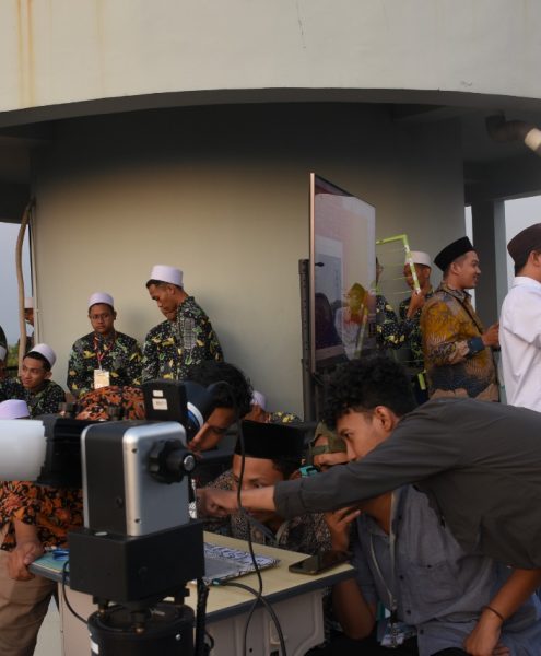 Santri Pondok Pesantren Mambaul Hikam Sidoarjo belajar praktik rukyatul hilal ke Planetarium dan Observatorium UIN Walisongo Semarang untuk penentuan awal bulan Rabi’ul Awwal pada hari Senin, 29 Safar 1444 H...