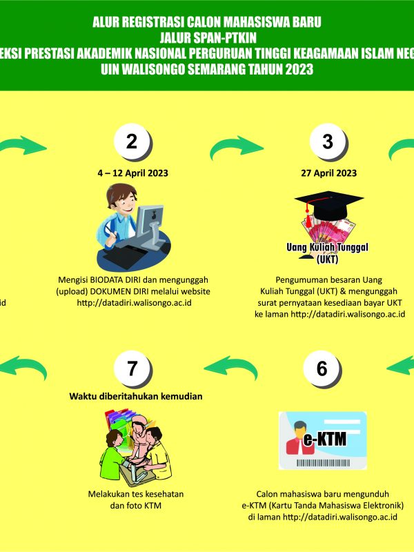 PENGUMUMAN Kelulusan, Tata Cara dan Proses Registrasi Calon Mahasiswa Baru Jalur SPAN-PTKIN Tahun 2023 Universitas Islam Negeri Walisongo Semarang. Informasi tentang : Hasil Kelulusan : silahkan klik disini… Alur...