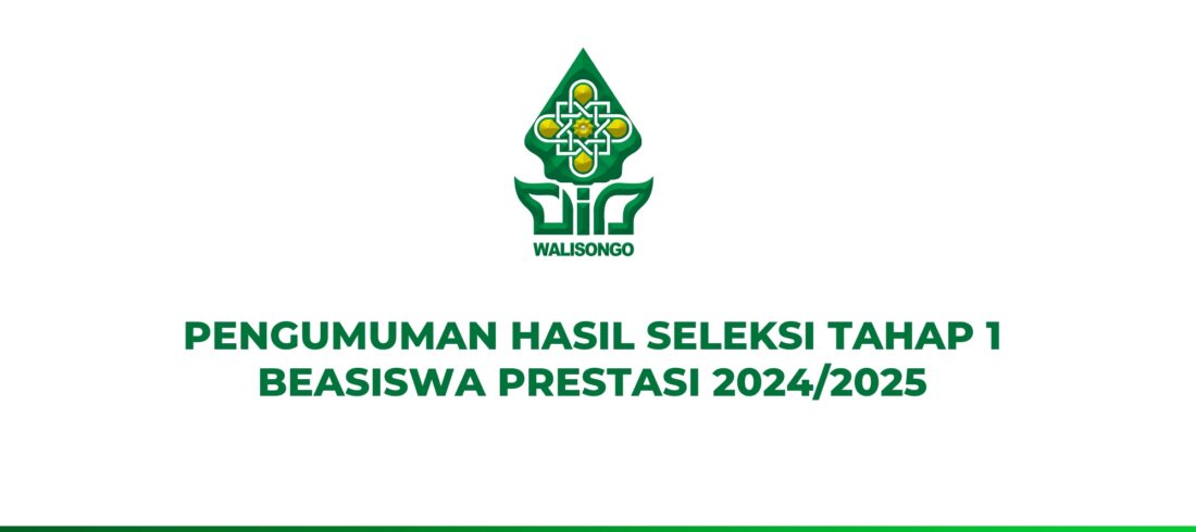 PENGUMUMAN HASIL SELEKSI TAHAP 1 BEASISWA PRESTASI 2024/2025 Berdasarkan hasil seleksi tahap I (verifikasi administrasi dokumen) pendaftarBeasiswa Prestasi Universitas Islam Negeri Walisongo Semarang Tahun Akademik 2024/2025, maka dengan ini diinformasikan sebagai berikut. 1. Pendaftar Beasiswa Prestasi Universitas Islam Negeri Walisongo Semarang TahunAkademik 2024/2025 yang dinyatakan...Read More