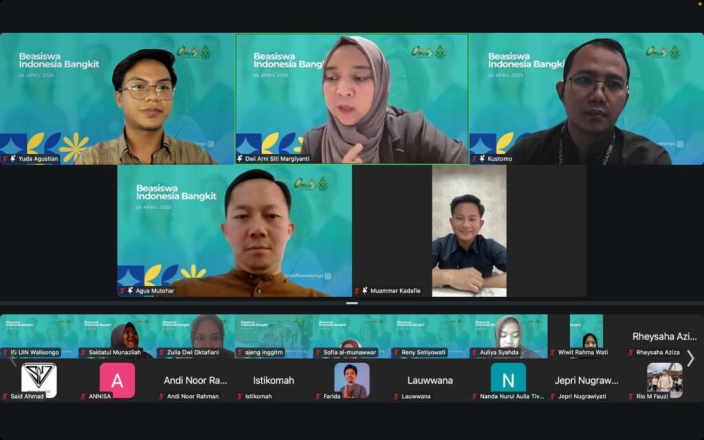 UIN Walisongo Online, Semarang – International Office UIN Walisongo Semarang sukses menyelenggarakan Webinar Beasiswa Indonesia Bangkit (BIB) 2025 secara daring melalui Zoom Meeting pada Sabtu (26/04/2025). Acara ini diikuti oleh berbagai peserta baik mahasiswa, dosen, serta mereka yang berminat melanjutkan studi ke luar negeri. Kegiatan ini bertujuan untuk memperluas wawasan peserta tentang peluang beasiswa internasional, serta menginspirasi mereka untuk meraih pendidikan tinggi.
