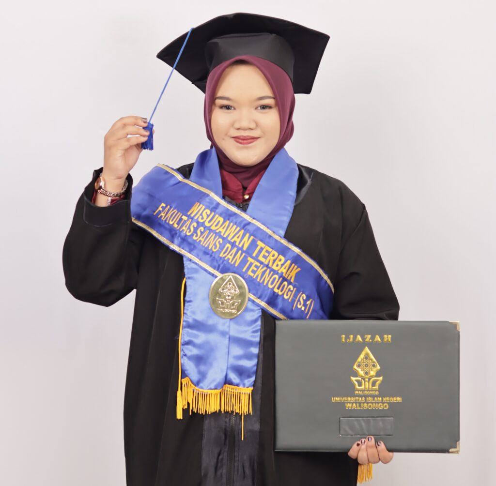UIN Walisongo Online, Semarang – Kisah inspiratif kembali hadir dari UIN Walisongo Semarang. Yuni Yusrotin, seorang anak dari seorang tukang becak asal Bojonegoro, berhasil meraih gelar sarjana terbaik pada Fakultas Sains dan Teknologi dalam acara wisuda yang digelar hari ini (24/05/2025) di Audit 2 Kampus 3 UIN Walisongo Semarang. Yuni berhasil lulus dengan Indeks Prestasi Kumulatif (IPK) yang sangat membanggakan, yakni 3,96.
